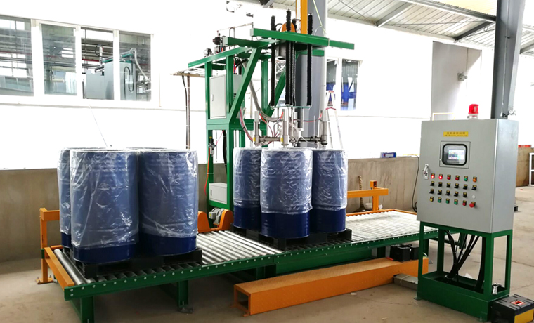 GAF-1500S4A自動(dòng)灌裝機(jī) 200Lx4桶液體灌裝生產(chǎn)線(xiàn)現(xiàn)場(chǎng)