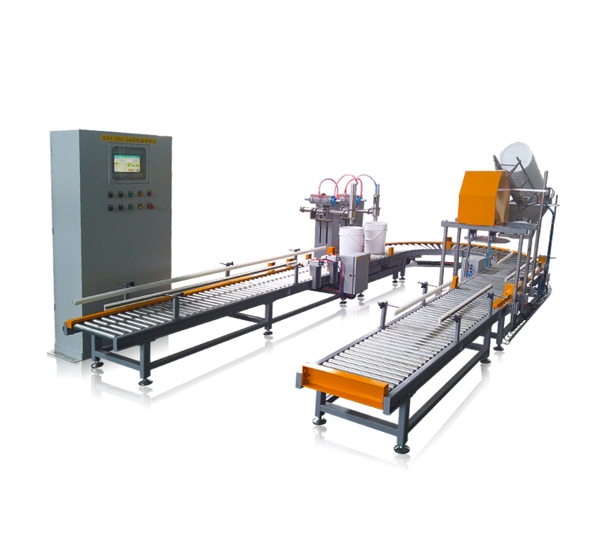 本線適用于200L桶自動(dòng)稱重計(jì)量灌裝,人工上桶,自動(dòng)進(jìn)桶,視覺(jué)尋口開(kāi)蓋,雙工位自動(dòng)灌裝,自動(dòng)旋蓋、壓防水蓋,自動(dòng)出桶,在線復(fù)檢及移栽剔除,自動(dòng)貼標(biāo),自動(dòng)碼垛,水平捆扎及自動(dòng)覆膜纏繞??蛇x擇直接對(duì)接空桶桶庫(kù),實(shí)現(xiàn)供、灌、存,智能化生產(chǎn)。